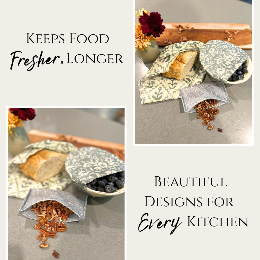 - 3 Versatile Sizes (S, M, L) – This set includes one small (7”x8”), one medium (10”x11”), and one large (13”x14”) wrap—perfect for fruit, sandwiches, cheese, bread, or covering bowls.