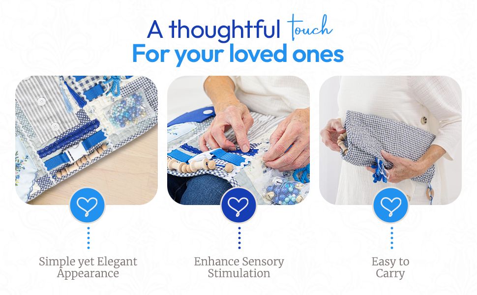 Easy to Carry - Keep your loved one occupied wherever they go. Whether at home, in a nursing facility, or during a doctor’s appointment, this portable fidget blanket is a calming and safe way to reduce stress and anxiety. It helps keep hands busy and provides soothing sensory engagement wherever it’s needed.