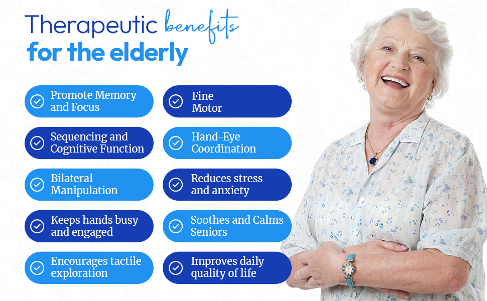Includes 10 activities - These stimulating sensory activities promote memory, fine motor, sequencing, hand-eye coordination, bilateral manipulation, and more. Carefully designed to include various levels of difficulty, making it ideal for seniors in all different stages of cognition.